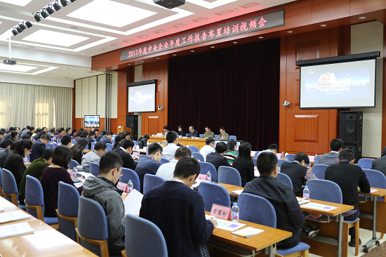 2017年11月2日,国资委组织召开2017年度中央企业年度工作报告布置培训视频会议。监督一局局长禾云同志作会议讲话,总结了2016年度报告工作成绩,部署了2017年度企业年度工作报告重点任务,对做好企业年度工作报告提出具体要求。国家电网公司、中国宝武钢铁集团有限公司等2家企业作了交流发言,中国中车集团公司、中国黄金集团公司等2家企业作了书面交流。监督一局有关同志讲解了年度报告的格式文本编报要求和试用软件。
