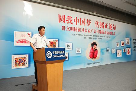 7月16日,由中央文明办、工业和信息化部、国务院国资委、全国总工会、共青团中央等5部门共同举办的“圆我中国梦 传播正能量——讲文明树新风公益广告传递活动”在中国移动通信集团举行,国务院国资委副秘书长郭建新同志出席并讲话。