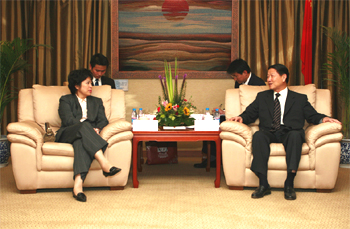 5月8日下午,国务院国资委主任李荣融在国资委会见了新加坡财政和交通政务部长陈惠华女士一行。双方就国有企业改制上市、分离办社会职能以及企业领导人员公开招聘、收入分配等问题进行了探讨。