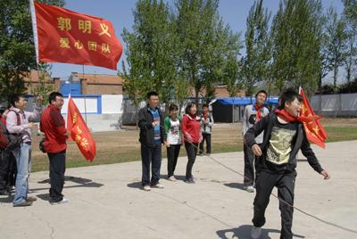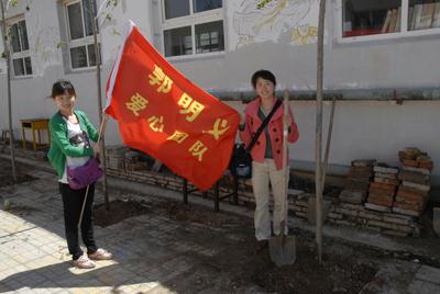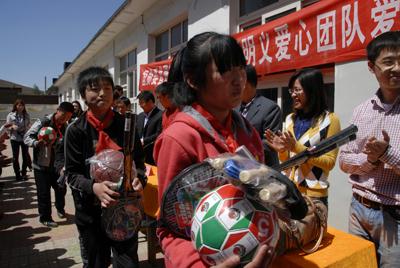 穿过重重烟雾,沿着唯一一条通向学校的泥泞公路来到三河市段甲岭镇蒋福山小学。这里交通闭塞,环境污染严重,经济落后,但是这些都没有使这里的孩子们放弃求学的欲望,反而激发起了大家更强烈的学习热情和改变家乡的愿望。看到150多个孩子稚嫩、纯朴、可爱的笑脸,志愿者们心情非常激动,纷纷把带来的学习用品和体育用品送到孩子们手中。随后,大家来到课堂上,为孩子们传授科学文化知识,回答孩子们提出的问题,鼓励他们热爱学习,要努力学习科学文化知识,做一个勇敢、坚强、有益于社会的人。志愿者们在表演了自编的节目后,又来到操场上,和孩子们共同做游戏,并植下了爱心树,祝愿孩子们能在社会各界爱心人士的帮助下和关心下茁壮成长,将来成为社会主义合格的建设者和接班人。