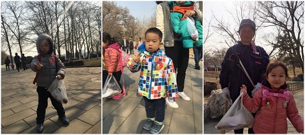 孩子们在家长的带领下,一早就来到了玉渊潭公园。家长们首先给孩子讲解了垃圾的分类和处理,发放了“学雷锋小小志愿者”胸贴和可降解垃圾袋。“小雷锋们”在家长的带领下沿着小路一起捡拾地上的果皮纸屑、枯枝落叶、饮料瓶和烟头等垃圾。小朋友们看到正在打扫卫生的环卫工人,立即跑上前去稚嫩地说“阿姨,我们都做小志愿者,您就不会累了”。环卫工人脸上露出会心地笑容。