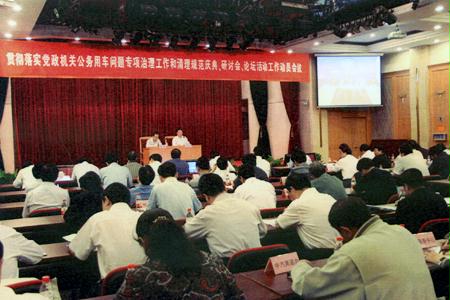 会议首先传达了贺国强同志在两项专项治理工作电视电话会议上的讲话精神,宣读了《国资委行政事业单位公务用车专项治理工作的方案和要求》、《国资委清理和规范庆典、研讨会、论坛活动工作实施方案》的主要内容。