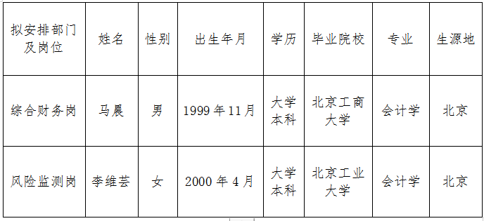 根据事业单位公开招聘人员有关规定,我单位先后完成资格审核、笔试、面试、体检、考察等程序,经研究,拟聘用以下2022年高校毕业生为我单位工作人员,现予公示。