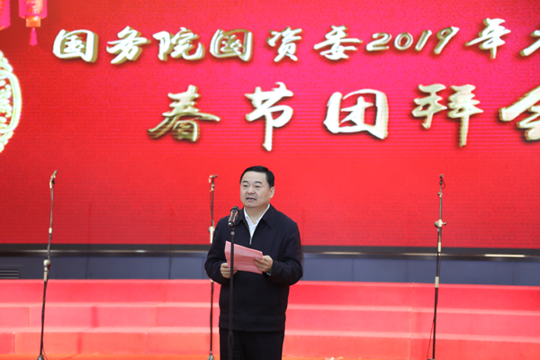 1月17日下午,国资委举办2019年离退休老部长春节团拜会。国资委党委书记郝鹏出席团拜会并致辞,代表国资委党委和全委干部职工向各位老领导、老同志致以节日问候和美好祝福。中央纪委国家监委驻国资委纪检监察组组长、国资委党委委员陈超英,国资委副主任、党委委员孟建民出席,国资委副主任、党委委员任洪斌主持团拜会。
