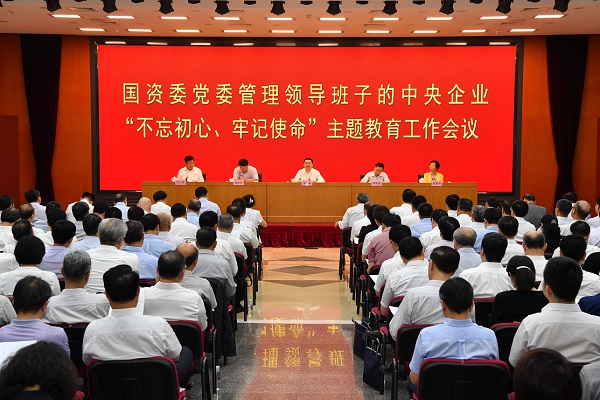 6月5日,国资委党委管理领导班子的中央企业“不忘初心、牢记使命”主题教育工作会议在京召开。国资委党委书记、主任郝鹏出席会议并讲话,对委管中央企业高质量开展主题教育进行动员部署。郝鹏强调,要深入学习贯彻习近平总书记在“不忘初心、牢记使命”主题教育工作会议上的重要讲话精神,树牢“四个意识”,增强“四个自信”,坚决做到“两个维护”,全面对标党中央确立的主题教育目标要求,紧密结合企业实际,教育引导委管中央企业广大党员干部守初心、担使命,找差距、抓落实,更好地肩负起党中央赋予的职责使命,坚定不移走中国特色国有企业改革发展道路,为做强做优做大国有资本,实现中华民族伟大复兴的中国梦作出新的更大贡献。国资委副主任、党委委员任洪斌主持会议。国资委党委委员出席会议。