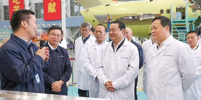 牢记使命奋力拼搏,大国重器彰显担当。郝鹏先后登上中国商飞即将交付的ARJ21飞机和中船集团江南造船公司行将竣工的船舶,对企业紧紧围绕国家战略,勇扛使命担当,致力产业报国取得的显著成绩给予充分肯定。郝鹏指出,中央企业要以更大的政治责任感深入学习贯彻习近平新时代中国特色社会主义思想,在学懂弄通做实上下更大功夫,增强战略自信,切实把学习成果转化为解决问题的方法和途径,不断增强“四个意识”,坚定“四个自信”,践行“两个维护”,始终把贯彻落实党中央决策部署的重任扛在肩上,全力服务“一带一路”建设和长三角一体化发展,不断提升核心竞争力和国际竞争力,更好彰显大国重器的责任担当。
