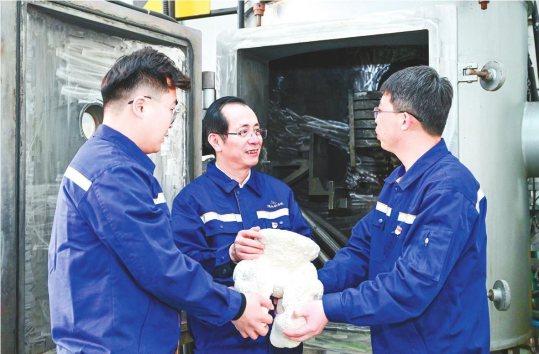 在市场化发展的道路上,沈铸所瞄准“国之所需”,专挑难啃的骨头啃。在上世纪90年代末,得知相关铸件多年研制仍未合格后,沈铸所谢华生带领团队毅然投入到研发攻关中,经过不舍昼夜的奋战,仅用40天时间就完成了从图纸到样品的冲刺。