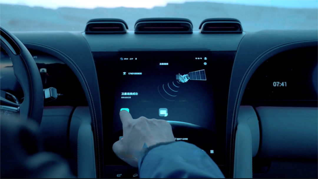 仰望U8车机连接天通卫星成功的画面,中国电信供图
