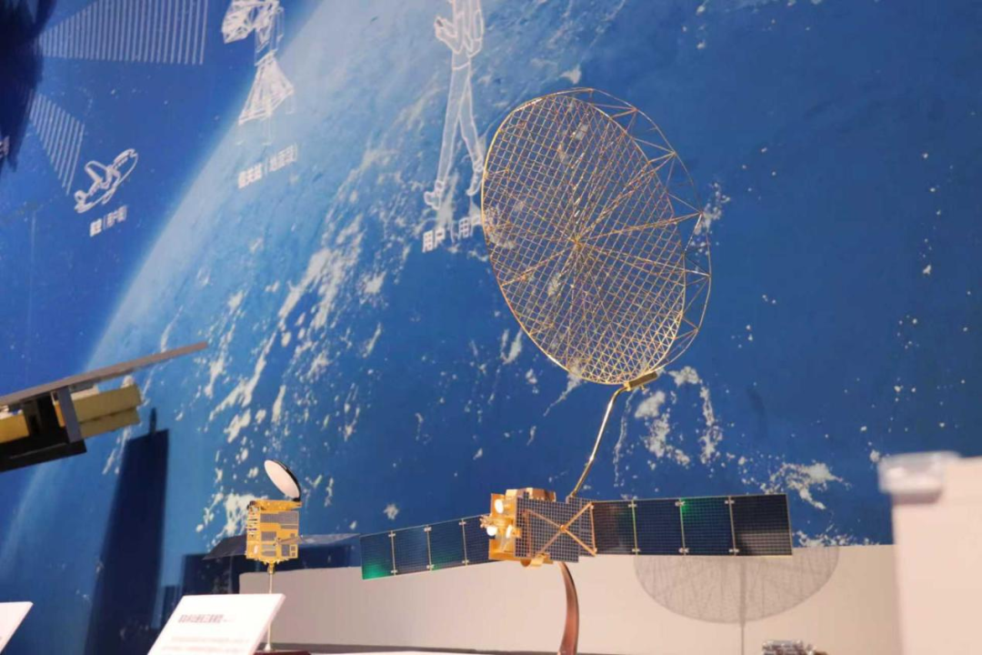 在“网络发展新图景成就展”上,北斗导航卫星、高轨移动通信卫星等以模型或图片的形式在中国国家博物馆展出,航天科技集团供图