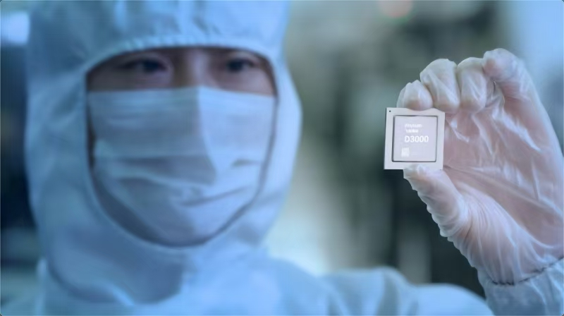 图为飞腾公司自主研发的新一代高效能桌面处理器D3000,中国电子供图