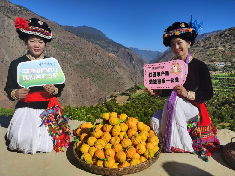 中国电信天虎云商作为助农电商平台,通过直播的方式宣传四川木里的皱皮柑产业 中国电信供图
