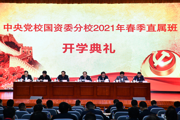 4月13日,中央党校国资委分校举行2021年春季直属班开学典礼,国资委企业领导人员管理二局局长姜维亮受国资委党委委员、副主任、中央党校国资委分校校长任洪斌委托作开班动员。