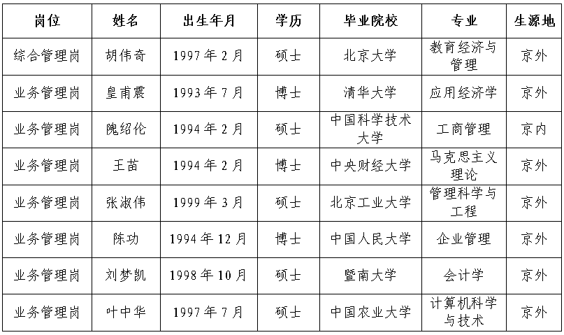 根据事业单位公开招聘相关规定,国务院国资委干部教育培训中心先后完成公开报名、资格审查、笔试、面试、体检、考察等程序确定拟接收人员名单,现予以公示。