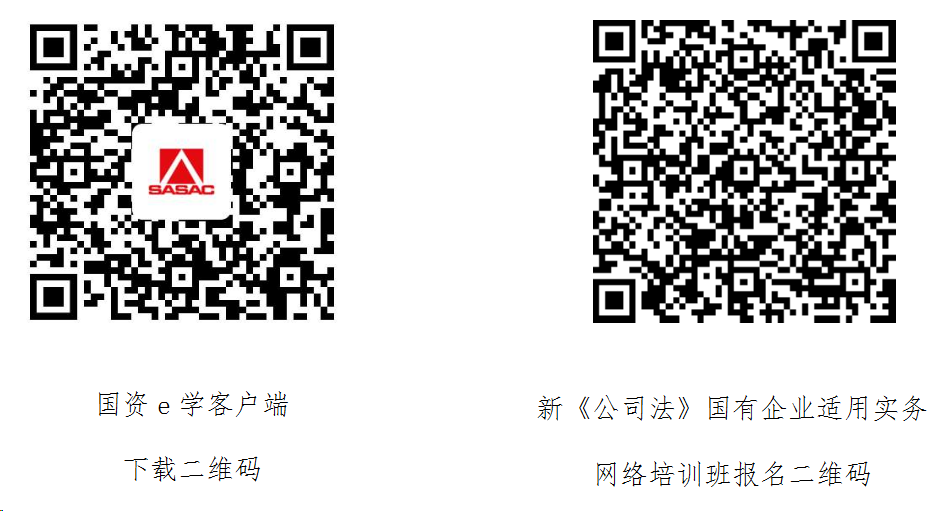 (四)获取培训通知附件及更多信息请扫描下方二维码下载“国资e学”手机客户端或访问“国资e学”网页elearning.tcsasac.com、关注“国资委干部教育培训中心”公众号。