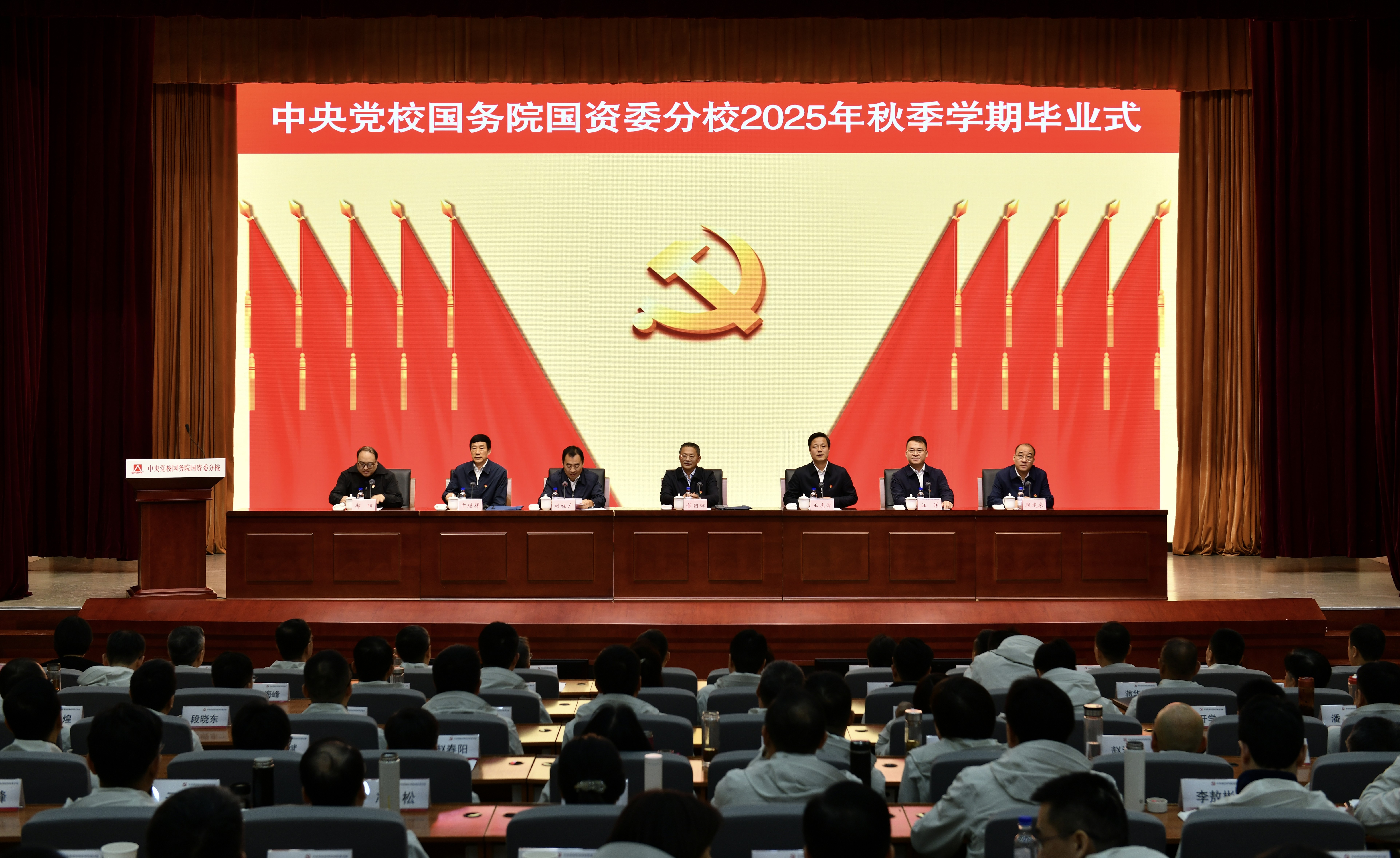 11月10日,中央党校国务院国资委分校举办2025年秋季学期毕业式。受国务院国资委党委委员、副主任,中央党校国务院国资委分校校长谭作钧委托,国务院国资委企干一局主要负责同志出席并讲话。中央党校(国家行政学院)教务部、国务院国资委有关厅局(单位)负责同志,局级干部进修班全体学员参加毕业式。毕业式上,为学员颁发了毕业证书、优秀学员证书、优秀毕业论文证书和优秀课题报告证书,优秀学员代表作了汇报发言。
