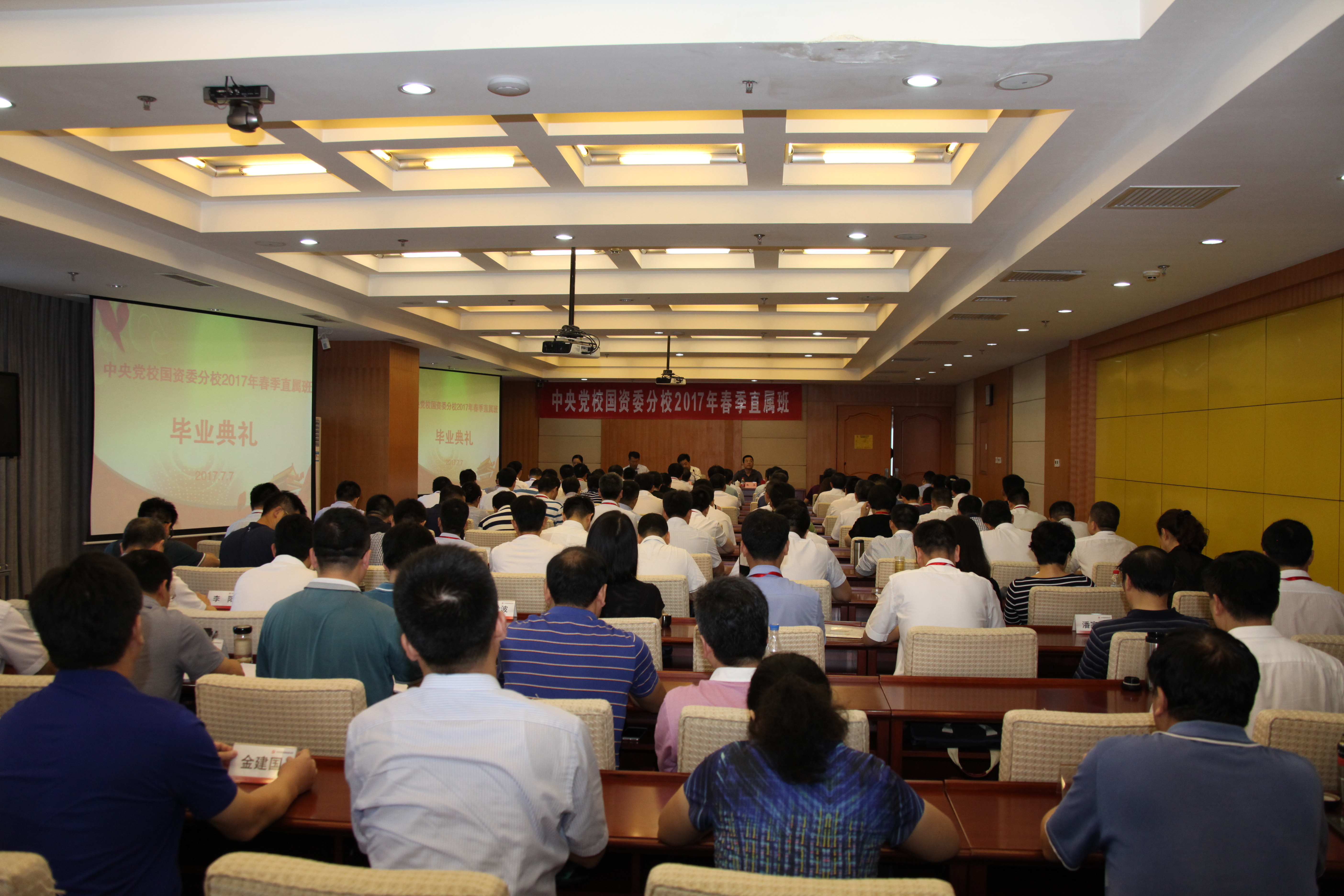 2017年7月7日,中央党校国资委分校举行2017年春季直属班毕业典礼。国资委企业领导人员管理一局、国资委直属机关党委、国资委分校有关负责同志出席,来自中央企业和国资委的104名学员参加了毕业典礼。经过三个月的学习,直属班学员圆满完成了规定的学习任务,取得了中央党校的毕业证书,33名学员被评为优秀学员,30名学员的毕业论文被评为优秀毕业论文。