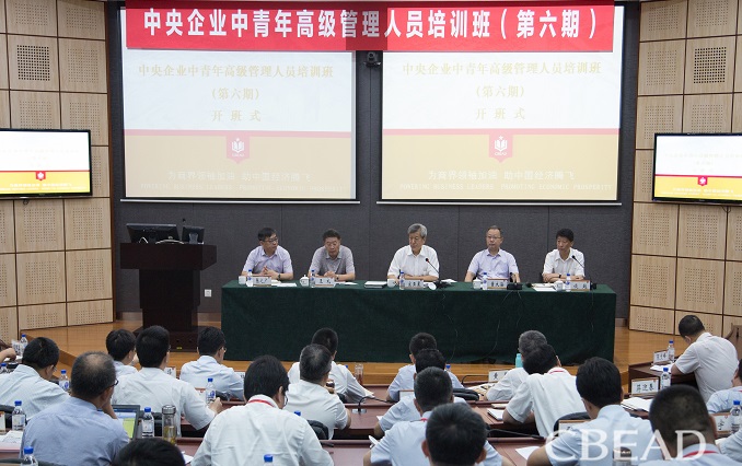 8月1日,中央企业中青年高级管理人员培训班(第六期)在学院开班。国资委企干一局局长、学院党委书记宋亚晨,国资委企干二局副局长王礼,学院常务副院长、党委副书记董大海,学院副院长谈越,学院党委副书记、纪委书记张之广出席开班式。宋亚晨发表重要讲话,董大海致欢迎辞,开班式由谈越主持。35位来自中央企业的学员同志参加了开班式。