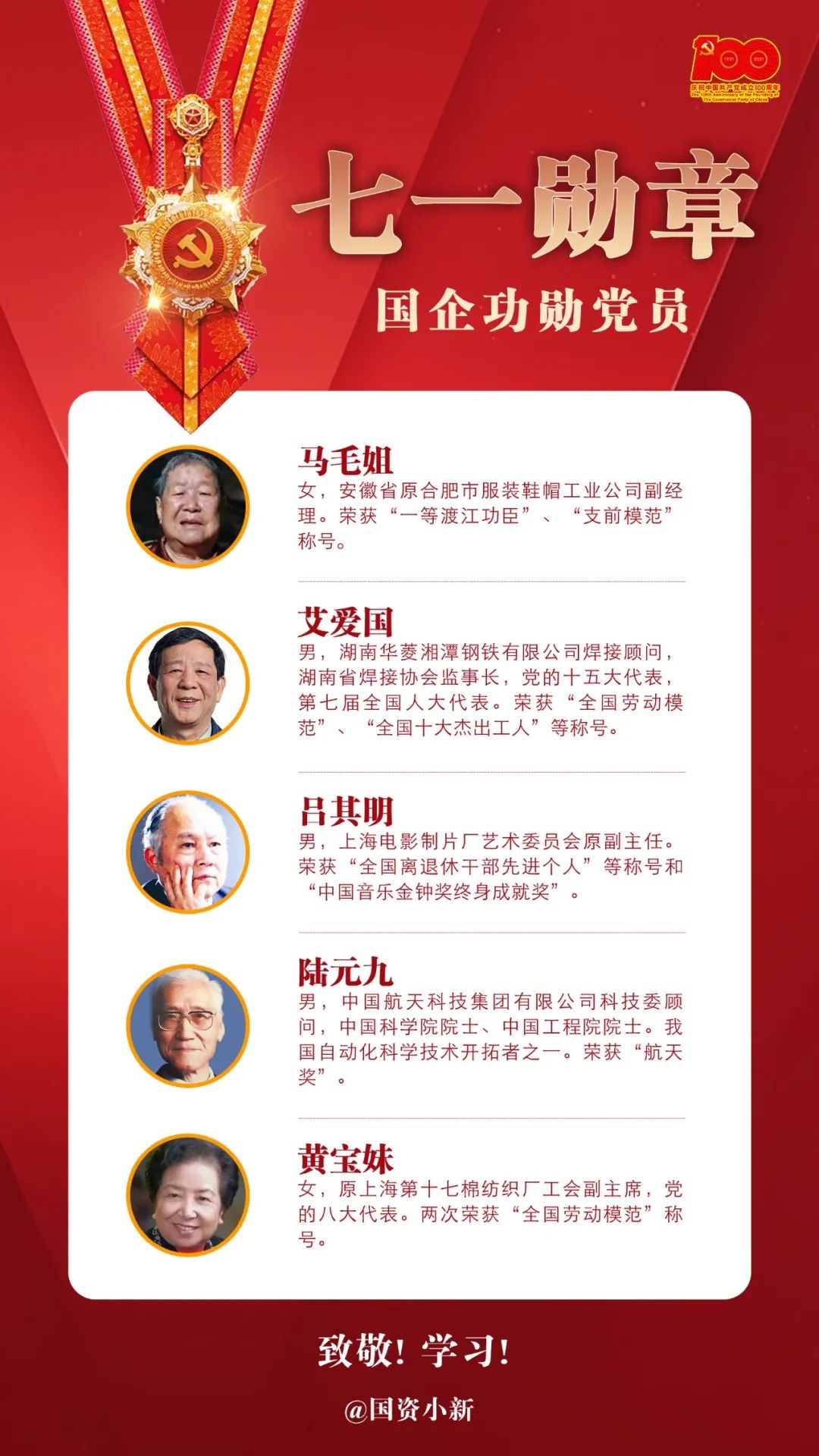 在中国共产党的坚强领导下,国有企业奋力拼搏、勇挑重担为党和国家事业发展建立了不朽功勋!29位功勋党员中,5位来自国有企业,致敬学习!