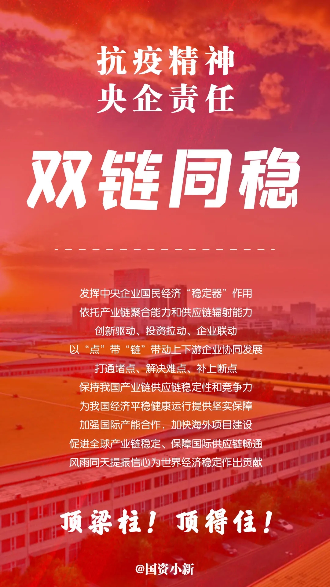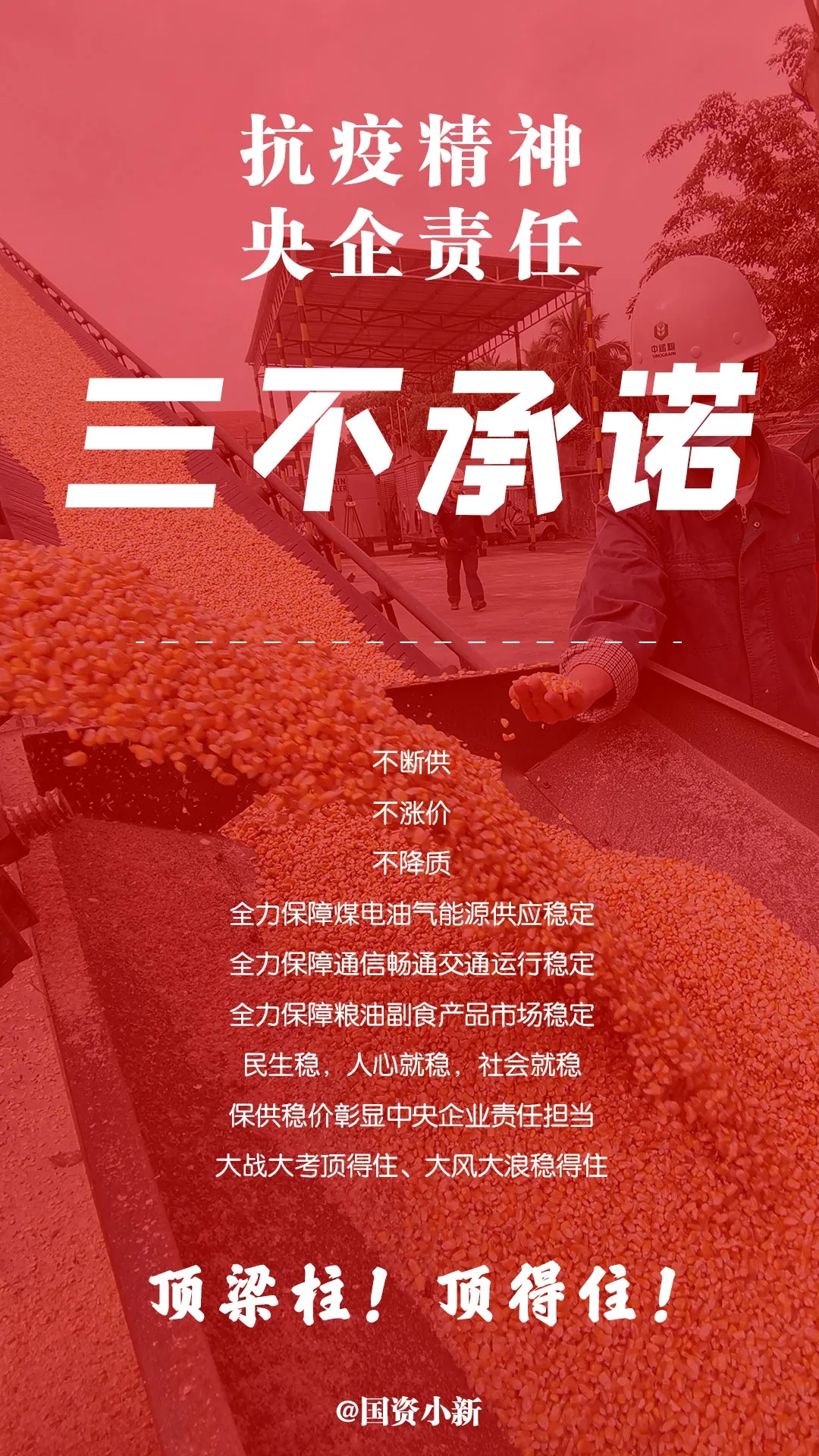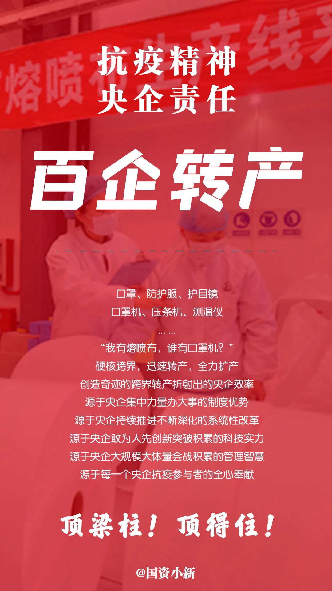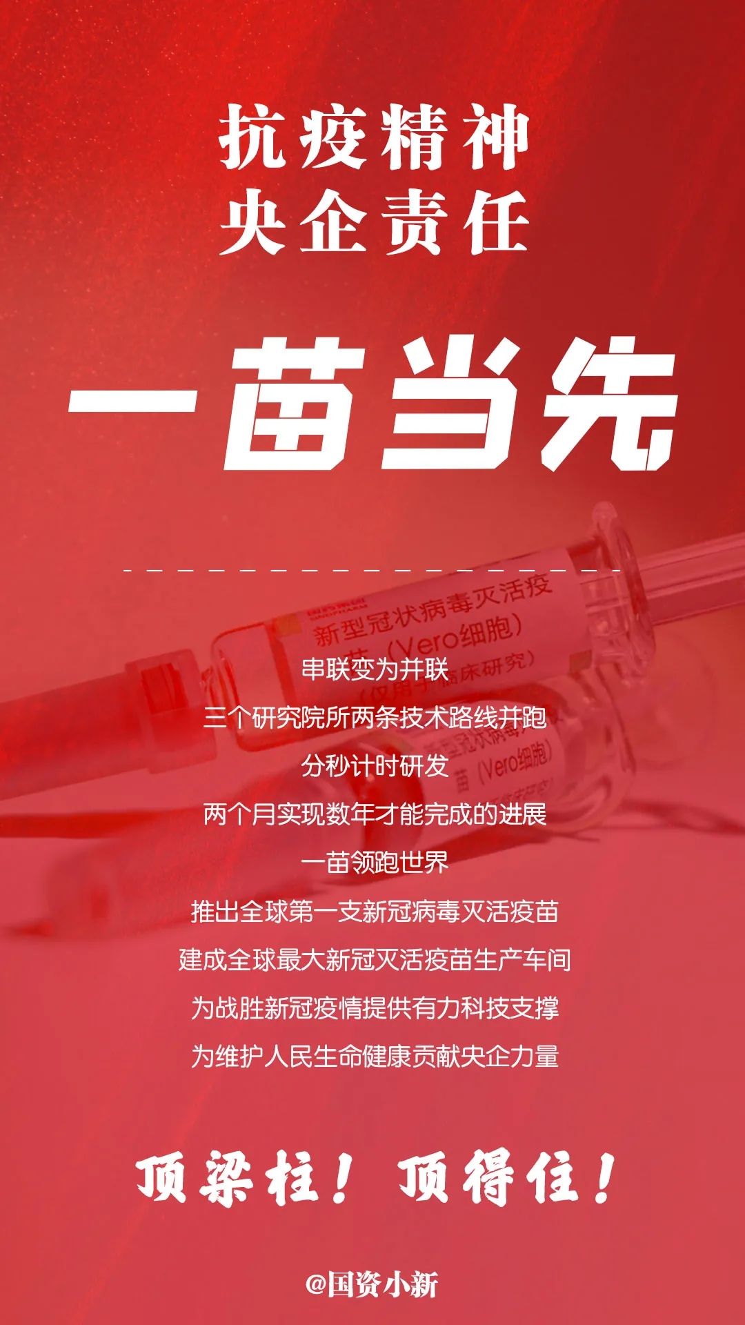 一苗当先,领先世界;两山速度,创造奇迹;三不承诺,保供稳价;五降担当,全力保障;百企转产,硬核跨界;双链同稳,协同发展。数说央企抗疫精神,共同见证央企责任。