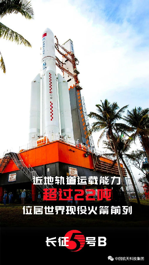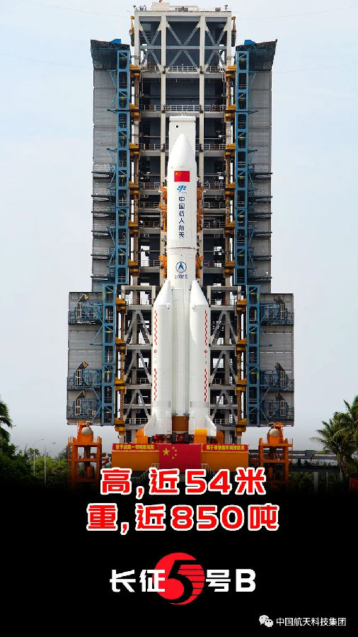 长五B“身高”近54米,相当于18层楼高,与长五比,矮了约3米,“体重”轻了约20吨。