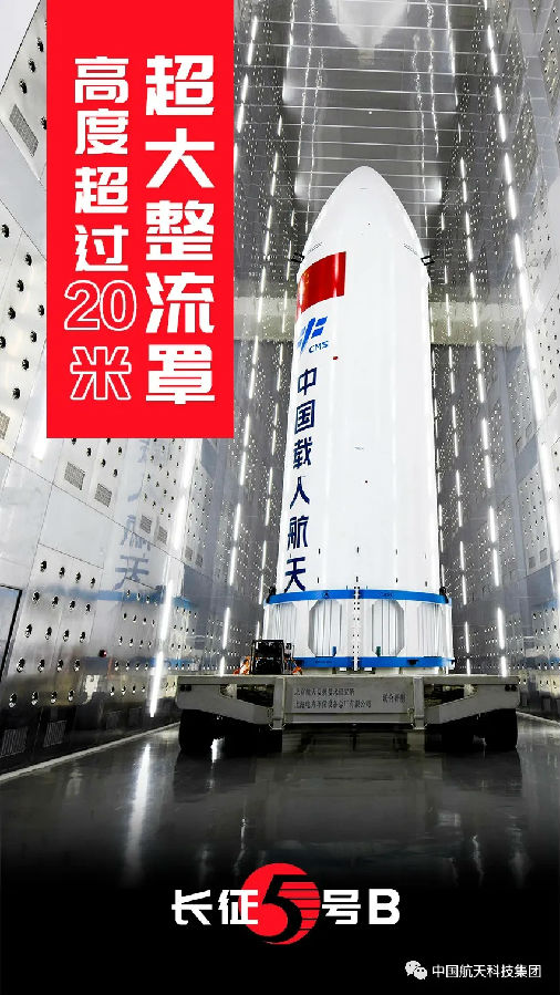 不过,长五B“头部”——整流罩比长五更大,有7层楼高,连10多米长、4米多粗的空间站核心舱都能装进去。