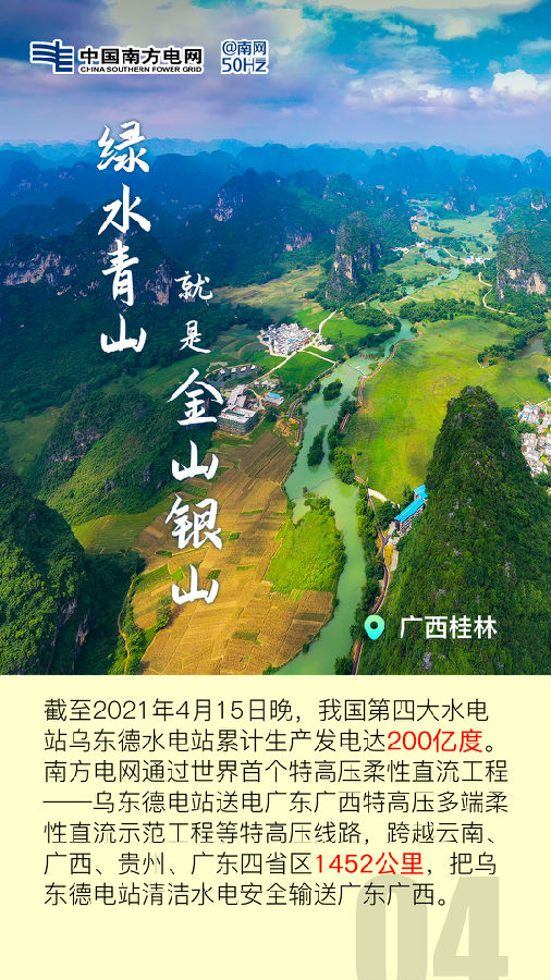 山水之间,关乎“国之大者!”近年来,南方电网公司深入贯彻落实习近平生态文明思想,全面落实“四个革命、一个合作”能源安全新战略,在推进清洁能源消纳、服务生态文明建设方面取得了一系列全国乃至世界领先的成果,为保护地球家园注入了南网力量。
