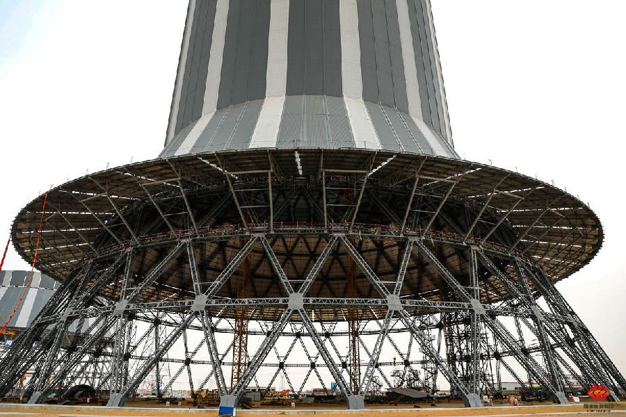 2021年1月15,国家能源集团国电上海庙项目间接空冷系统1号冷却塔底部仰视图。国家能源集团国电上海庙项目将从“安全、高效、环保、低碳、灵活、智慧”六个维度出发,将该项目打造成绿色燃煤电站示范工程和智慧燃煤电站示范工程。