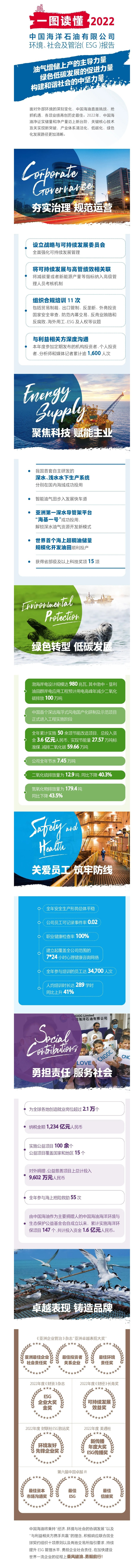 2022年,中国海油在环境保护、履行社会责任和企业自身治理(ESG)等方面做了哪些努力,为您一图解读。