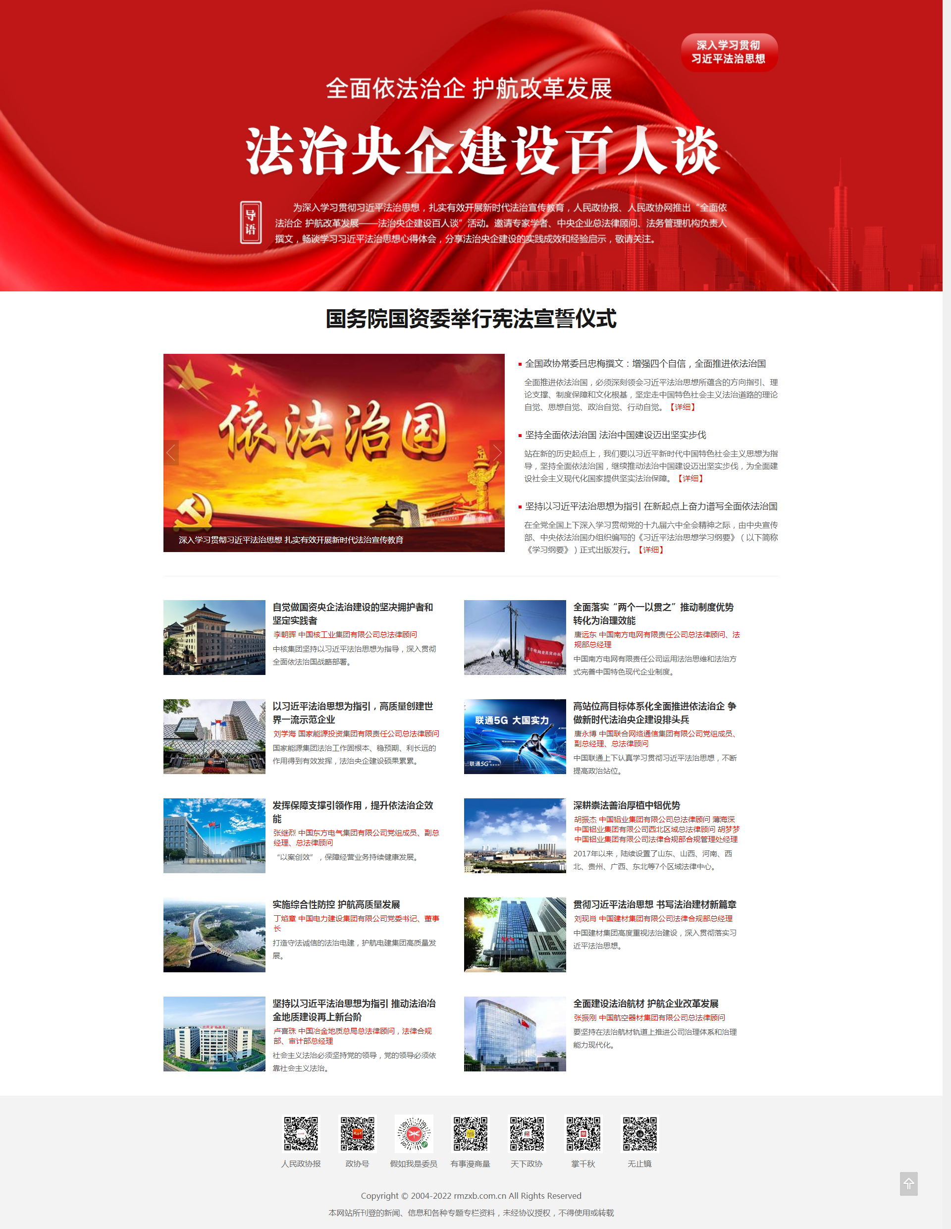 日前,由人民政协报、人民政协网推出的“法治央企建设百人谈”活动正式启动。