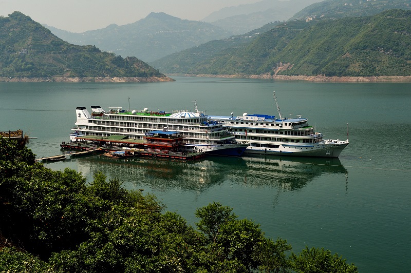 如今,在三峡核心区,所有游轮已全部用上清洁岸电。图为一艘游轮停靠湖北秭归县归州镇港口码头。