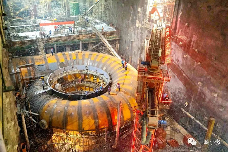 自2018年6月底,白鹤滩水电站全球首台百万千瓦机组首仓肘管混凝土启动浇筑,到2018年11月24日座环整体吊装,再到2019年5月4号蜗壳混凝土开始浇筑,前后历时11个月。期间,在白鹤滩工程建设部党委的指导下,白鹤滩工程建设部第二党支部(地厂项目部)坚持统一思想,积极创建“党员红旗岗、先锋号、攻关小组”,以施工区大党建促进工程建设,围绕关键性问题,参建各方、各个专业的建设者们拧成一股绳,攻克了800MPa高强钢大直径蜗壳焊接、座环整体吊装等一系列难题。