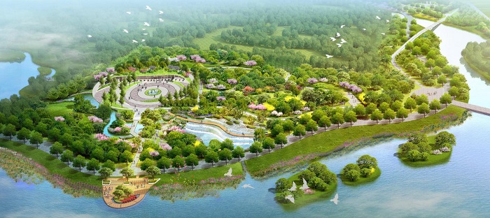 河北雄安绿博园位于雄安新区北部,总规模2.68万亩,由14个特色核心城市展园及城市林项目组成,以打造“生态文明雄安典范”为目标,统筹城、水、林、田规划建设,融合燕赵大地核心元素,构建森林水系网络,完善基础服务设施,打造功能多元的城市森林体系,特色鲜明的城市展园体系,配置合理的景观游览防护体系,预计2021年6月竣工。