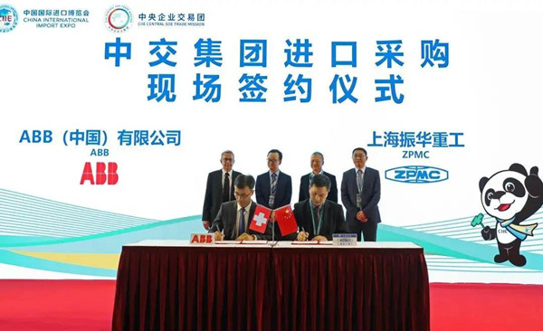 11月7日,中交集团组织旗下振华重工在第三届进博会上举行集中签约仪式,现场与瑞士ABB、德国西门子和日本安川电机等8家合作伙伴签订采购订单,采购范围涵盖了电控系统、港口起重机吊具、轴承、制动器、移动电缆等产品。