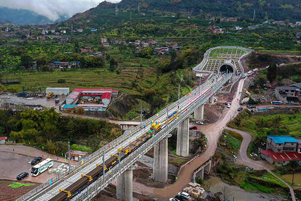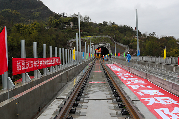 3月1日,在重庆市万州区天城隧道施工现场,郑州至万州高铁(以下简称郑万高铁)重庆段第一组500米长钢轨稳稳落下,标志着郑万高铁重庆段全面进入铺轨阶段,离开通更近一步。