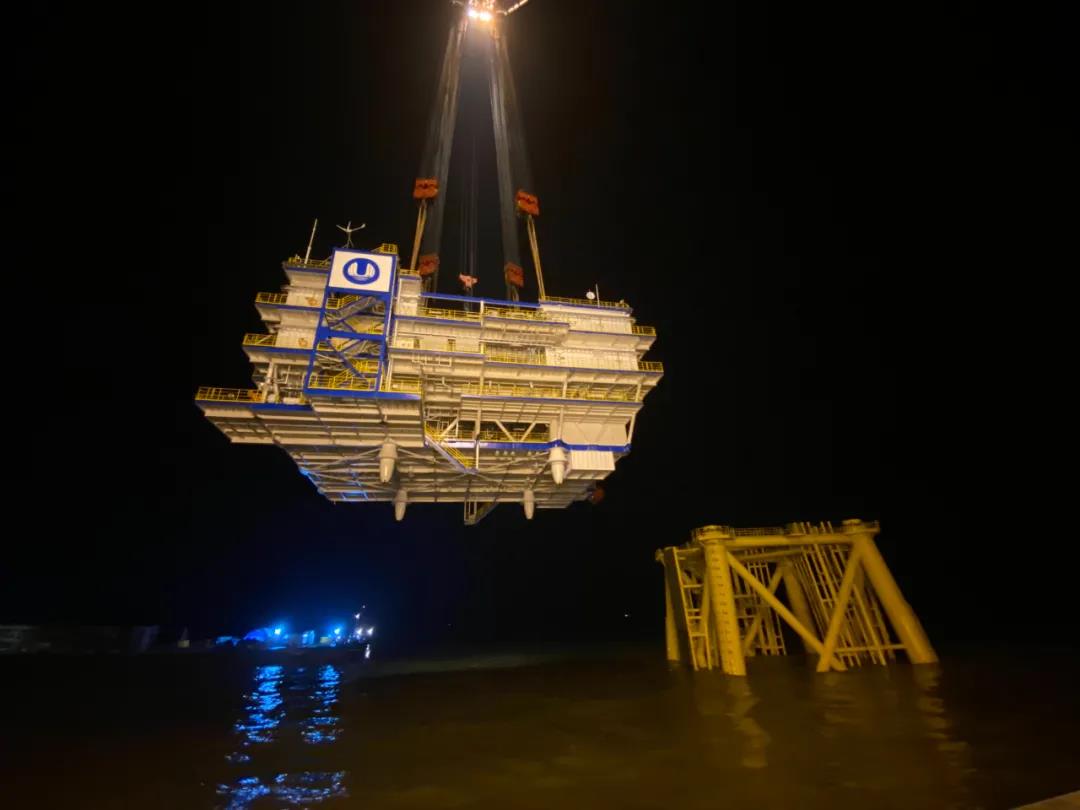 近日,三峡新能源江苏如东H10项目海上升压站吊装顺利结束。至此,三峡新能源江苏如东(H6、H10)海上风电项目的两座海上升压站海上安装工作全部完成,标志着三峡新能源江苏如东海上风电柔直项目又一“脉络”顺利打通,为实现2021年全容量并网发电奠定坚实基础。