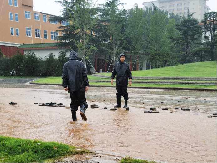 7月19日,中国城乡北林科技登封中岳文旅项目部第一时间召开防汛紧急部署会议,启动项目部防汛预案,组织管理人员冒雨进行现场安全隐患排查、24小时驻守工地等措施进行防汛,并对存在隐患的部位进行了紧急处理。