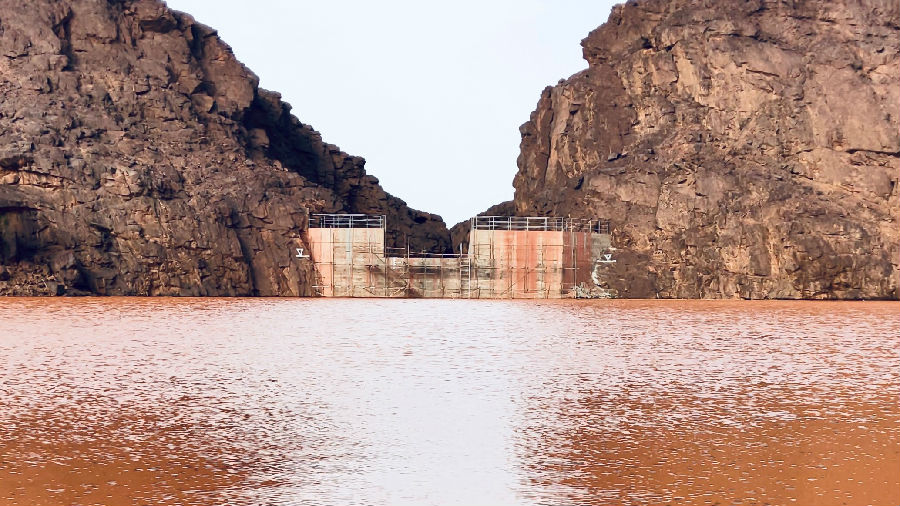 该水坝地处毛里塔尼亚祖埃拉特市弗德里克地区矿山深处,坝型为混凝土重力坝,坝高19.1米,坝堤总长23.3米,最大有效库容36.3万立方米,溢洪道长13.3米。