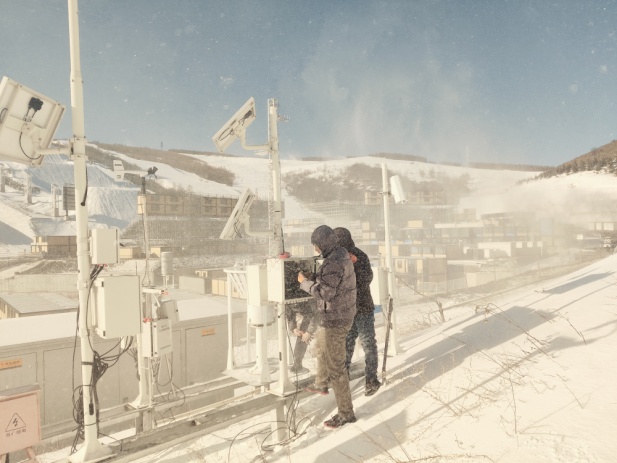 相较于远距离“指点风云”的队友们,2021年是中国航天科工二院23所自动气象站保障队员在冬奥赛区冲刺的一年。为保证风传感器在人工造雪期间的正常运行,保障队员对数十套风传感器进行了改造,增加加热融冰装置,解决降雪期间机械风传感器凝冻现象。