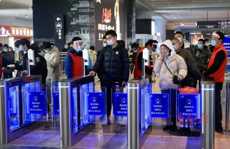 日前,江西联通为南昌西站出站层防疫卡口安装了12台“5G+AI防疫智慧通行”设备,实现了集体温监测、身份信息核验、健康码自动识别于一体,方便快捷的出行体验,赢得南来北往旅客的一致好评。旅客在出站口刷健康码或刷身份证后,设备屏幕上不仅能自动显示身份信息及行程码,还可以一并显示当前体温、最新核酸检测结果、新冠疫苗接种情况等,极大提高了通行效率,缩短了旅客排队等候时间,降低了聚集风险。同时也方便了那些没有智能手机和不会使用智能手机的人群,让他们也能自行快捷出站。