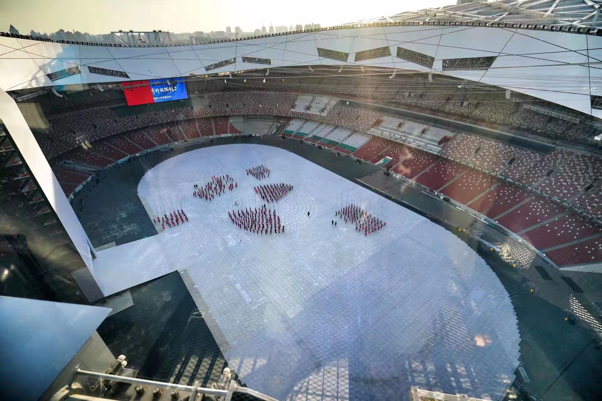 2021年6月,开幕式整体创意方案敲定,威亚的设计、生产、安装正式开始。距地面50多米高的威亚装置在鸟巢成型,该装置能吊装6吨多的设备,而2008年的威亚装置仅能吊装几百公斤重量的设备。
