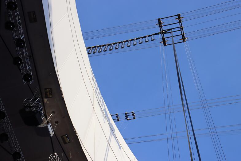 冰立方升起来后,奥运五环慢慢呈现。五环吊装是难点,有严格的重量限制。因此,它虽然体量很大,但厚度其实很薄。一院15所项目团队做了多次仿真和现场试验,最终完成了五环的完美亮相。