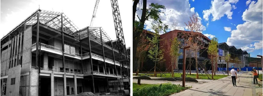 中建建设者在首钢园深耕5年之久,充分运用“新旧织补”的工业遗存改造理念,坚持“忠实保留”和“谨慎加建”,累计完成改造工程13个,改造面积约18万平方米,助力百年首钢园开启焕新蝶变之旅,打造新时代首都城市复兴新地标。如今的首钢园,工业遗存、奥运元素与首钢文化有机融合,尽显激情与活力。