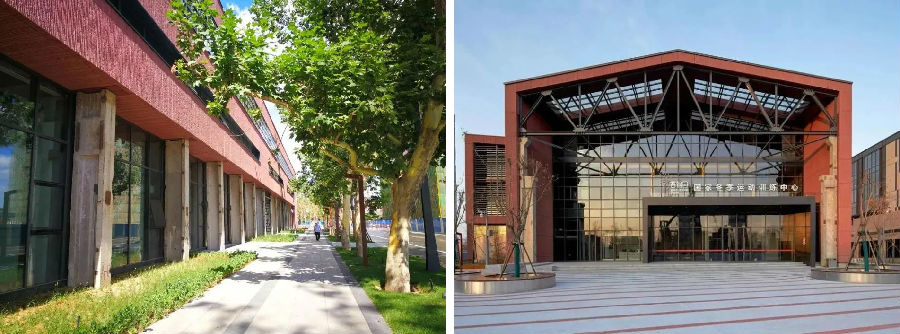 “四块冰”(短道速滑、花样滑冰、冰壶、冰球)冬训中心主要是在原工业厂房空间结构基础上,针对冰雪运动特点和比赛训练要求进行“私人订制”。为实现训练场馆与比赛场馆的“无差异感”,项目建设者通过技术攻关,采用巴洛特钢板幕墙形式、选用真空保温板、应用混凝土板的装配式思路指导施工,实现了小空间建筑的节能需求,同时便于远期场馆的功能转换,破解了“奥运场馆寿命短”的世界性难题。