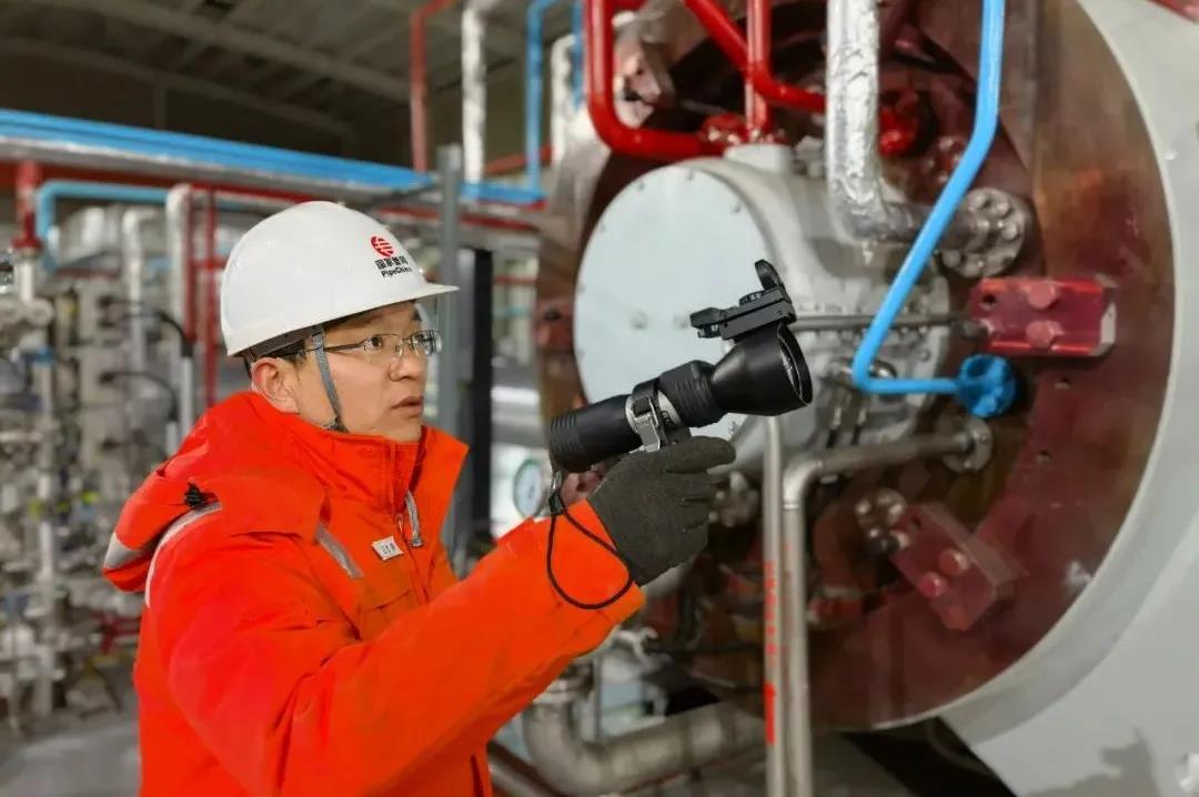正午时分,国家管网集团北京管道公司托克托作业区副主任王志勇正拿着激光泄漏检测仪,在大雪覆盖的场站内专心地检测密封点是否存在泄漏。