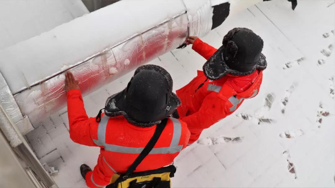 大雪过后,北京管道公司延庆作业区西沙屯分输站员工卢光、裴海渊穿着厚重的棉工服穿梭在设备工艺区,对设备加密巡护。零下10℃的低温与呼出的热气瞬间在护目镜上结成冰花。延庆作业区是保供北京冬奥会的前沿阵地,自冬季保供开启以来,已向延庆地区供气近9000万立方米。