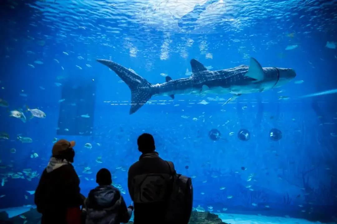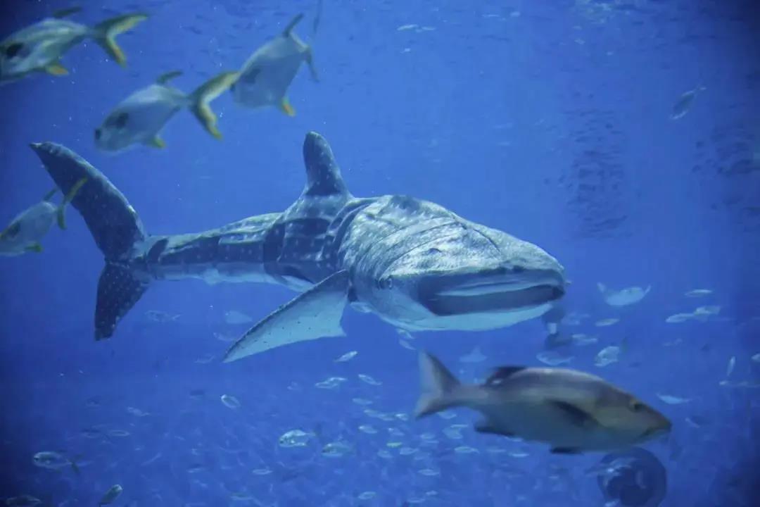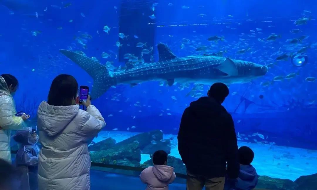 这样一个特殊的“演员”,是由中国航天科工三院111厂水下仿生团队精心培育的大型水下观赏仿生鱼,它能够高度仿真模拟真实鲸鲨动作,与真实的鲸鲨几乎如出一辙,不仅炫酷,而且科技感十足。只见它在七度倾斜的沉浸式大展缸内与万千色彩斑斓的奇珍鱼类并肩遨游,吸引了众多游客的目光。