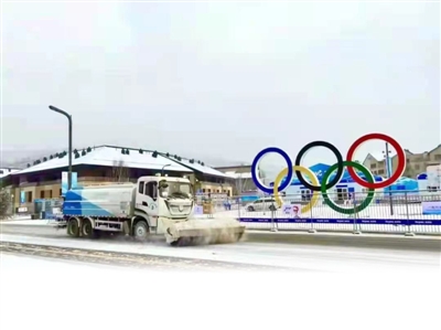 在本届冬奥会三大赛区的各场馆、场地周边,东风天锦除雪铲冰车、东风天锦环卫车正在勤奋工作。