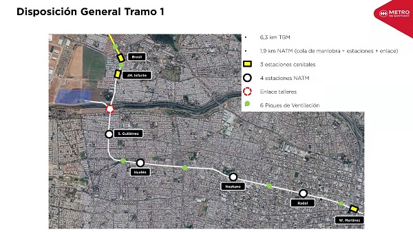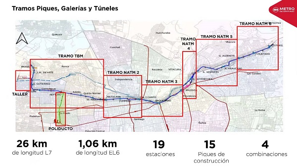智利圣地亚哥地铁7号线全线长27公里,共设19座车站,连接起了首都圣地亚哥的7个区,是智利政府近年来的重点项目。中国铁建承建的圣地亚哥地铁7号线1标段是整个全线中最为重要的标段,项目业主为智利圣地亚哥地铁公司。项目全长7.898公里,主要工程内容包括6.662公里盾构施工隧道、7座岛式车站,以及施工竖井等。项目建成后,全线运行只需43分钟,可缩短两个终点站间54%的行程时间,为超过136万居民提供快捷便利的出行服务。