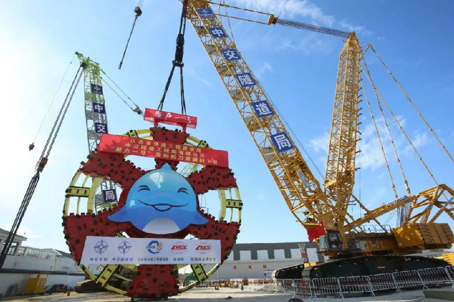 近日,中交集团所属中交一公局集团隧道局参建的国内在建承受水压最高、直径最大盾构隧道——江阴靖江长江隧道所用盾构机“聚力一号”刀盘在江苏靖江成功下井。