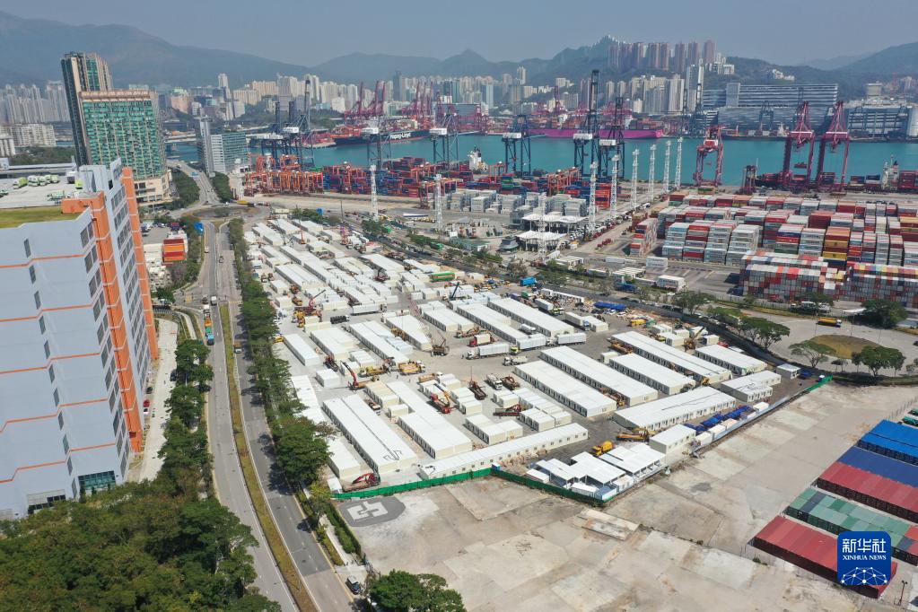 这是2月26日拍摄的香港青衣方舱医院项目工地(无人机照片)。新华社发